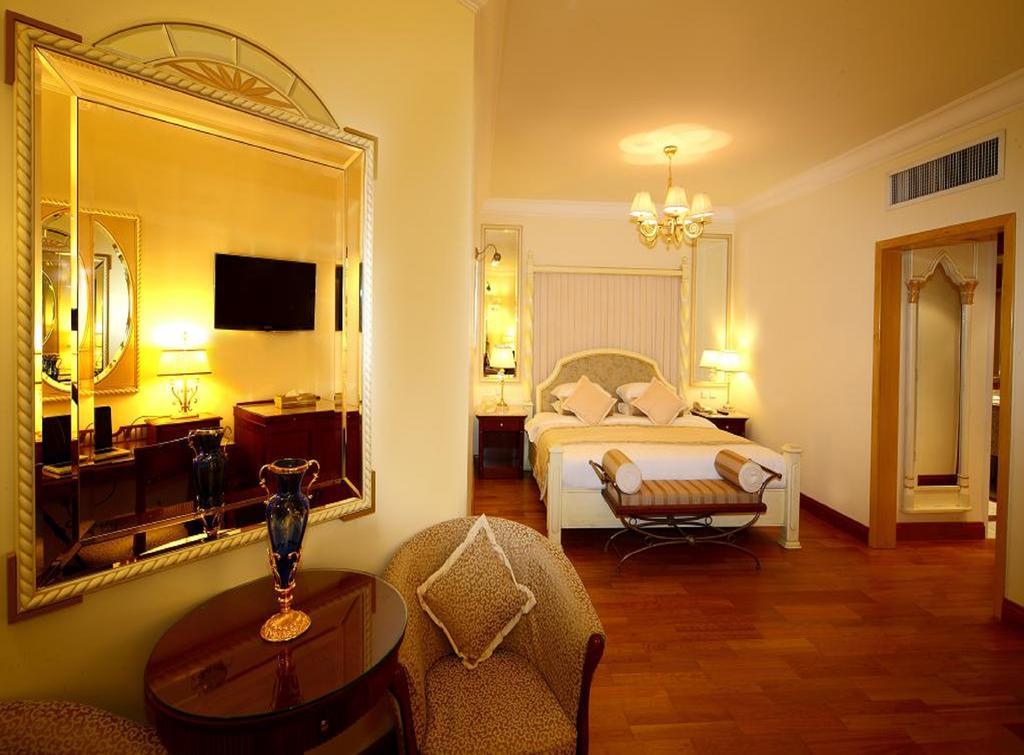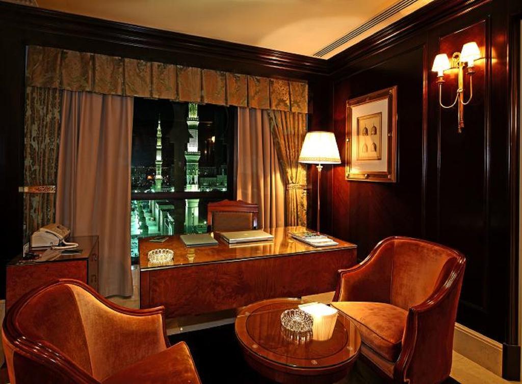 توفر جميع الغرف والأجنحة في فندق أوبروى إطلالات على المدينة أو المسجد النبوي، ويحتوي كل جناح على غرفة معيشة مع تلفزيون بشاشة مسطحة وميني بار، فيما تحتوي بعض الأجنحة على منطقة تناول طعام منفصلة. وتشتمل بعض الحمامات على إكسسوارات مطلية بالذهب.