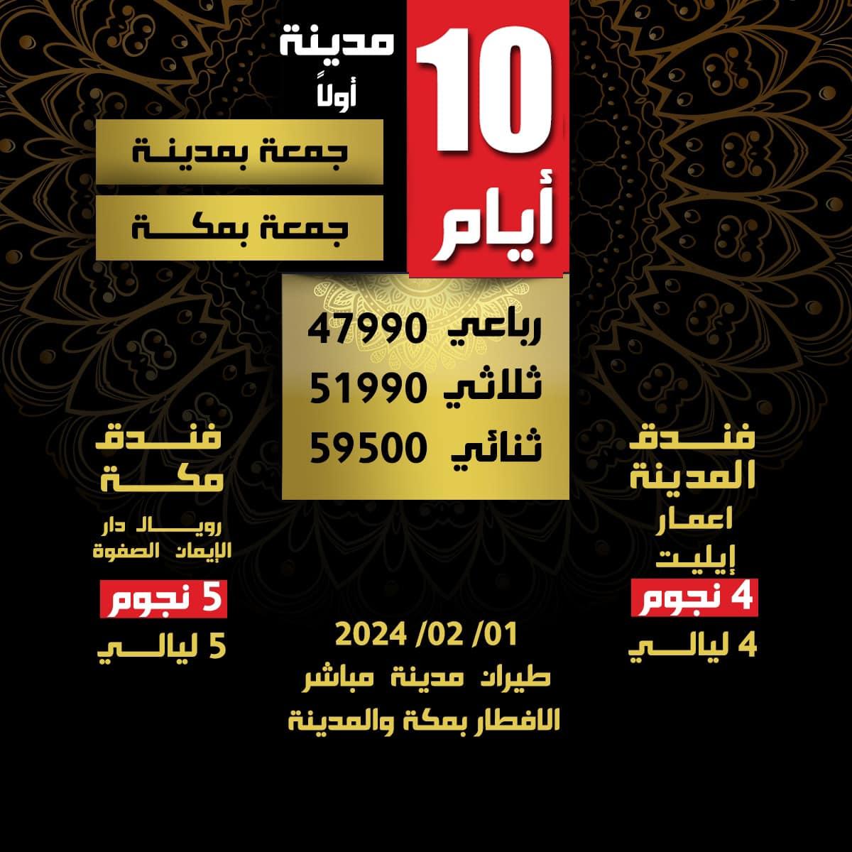 تفادياً لتقلبات سعر صرف الريال، يُرجى دفع كامل القيمة عند الحجز. تم احتساب سعر تذكرة الطيران: ذهاب مدينة مباشر 17000 وفقا للسعر المتوقع ويتم تحديث سعر التذكرة بالزيادة او النقصان وفقاً لأي مستجدات