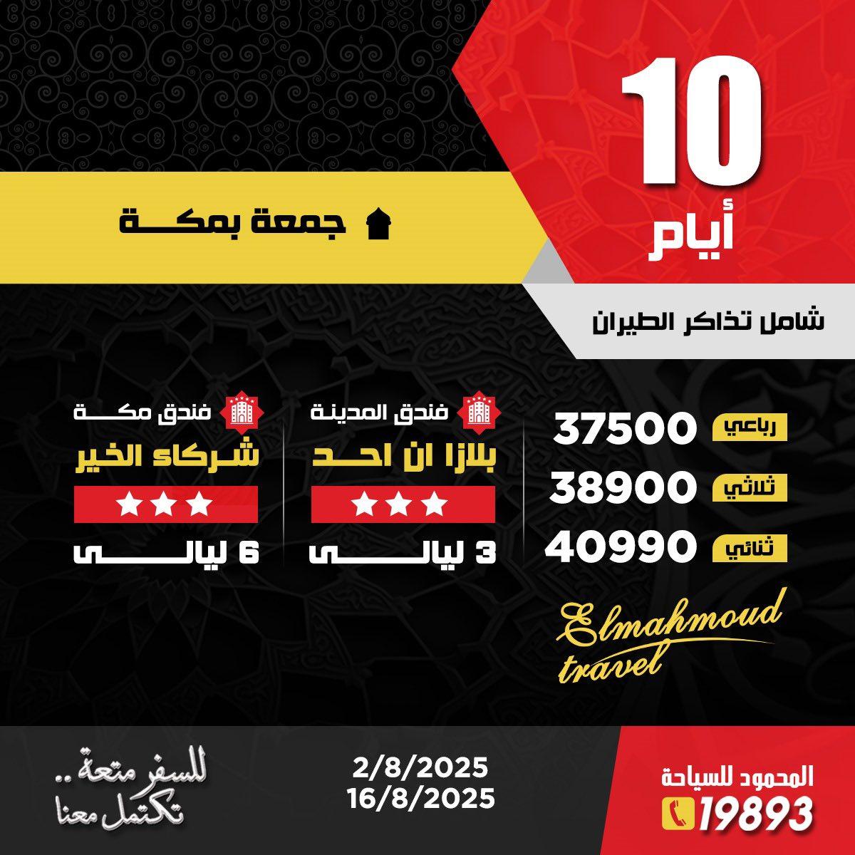 تفادياً لتقلبات سعر صرف الريال، يُرجى دفع كامل القيمة عند الحجز. تم احتساب سعر تذكرة الطيران: ذهاب مدينة مباشر 17000 وفقا للسعر المتوقع ويتم تحديث سعر التذكرة بالزيادة او النقصان وفقاً لأي مستجدات