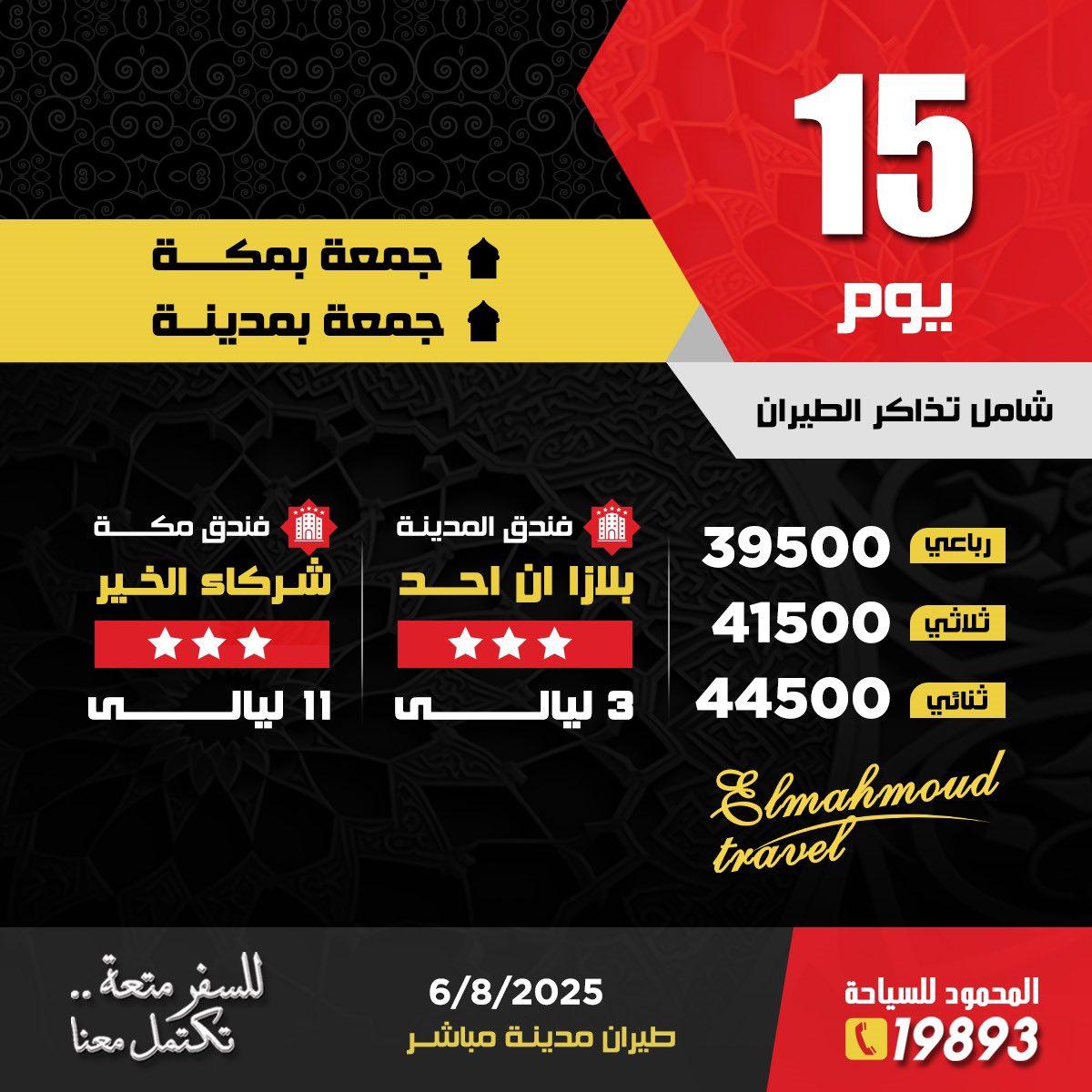 تفادياً لتقلبات سعر صرف الريال، يُرجى دفع كامل القيمة عند الحجز. تم احتساب سعر تذكرة الطيران: ذهاب مدينة مباشر 17000 وفقا للسعر المتوقع ويتم تحديث سعر التذكرة بالزيادة او النقصان وفقاً لأي مستجدات