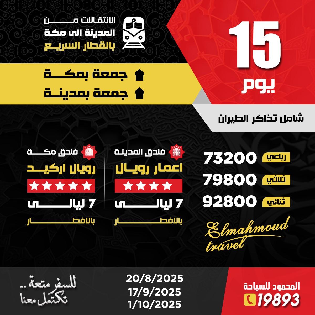 تفادياً لتقلبات سعر صرف الريال، يُرجى دفع كامل القيمة عند الحجز. تم احتساب سعر تذكرة الطيران: ذهاب مدينة مباشر 17000 وفقا للسعر المتوقع ويتم تحديث سعر التذكرة بالزيادة او النقصان وفقاً لأي مستجدات