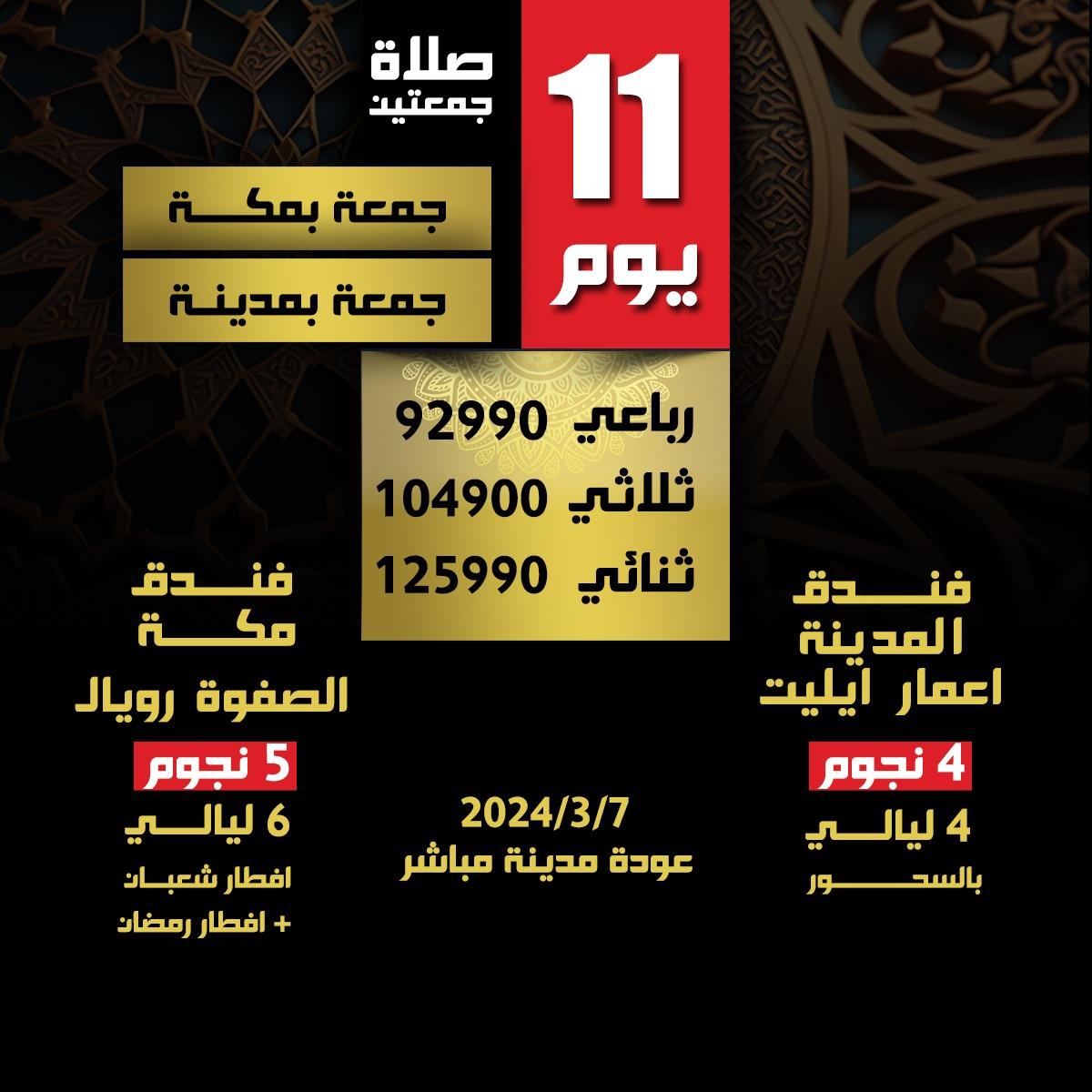 تفادياً لتقلبات سعر صرف الريال، يُرجى دفع كامل القيمة عند الحجز. تم احتساب سعر تذكرة الطيران: ذهاب مدينة مباشر 17000 وفقا للسعر المتوقع ويتم تحديث سعر التذكرة بالزيادة او النقصان وفقاً لأي مستجدات